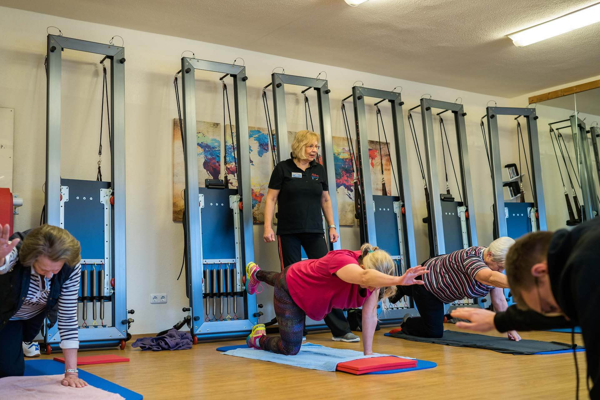 Pilates ist ein wesentlicher Bestandteil unseres ganzheitlichen Therapieansatzes. Es gehört zu den effektivsten aktiven Therapiemaßnahmen. In unserer Praxis bieten wir Kurse für Anfänger und Fortgeschrittene. Dabei unterscheiden wir in drei Trainingsformen.